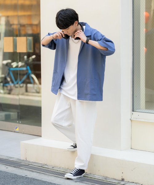 半袖セットアップ メンズ シャツジャケット ワイドパンツ タンクトップ ノースリーブtシャツ インナー 5分袖 きれいめ 無地 シンプル オーバーサイズ テーパ ロッキーモンロー Rocky Monroe Magaseek
